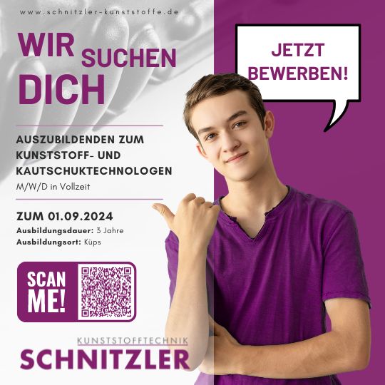 Zur Verstärkung unseres Teams suchen wir zum Ausbildungsbeginn am 01.09.2024 einen Auszubildenden zum Kunststoff- und Kautschuktechnologen (m/w/d) in Vollzeit.
